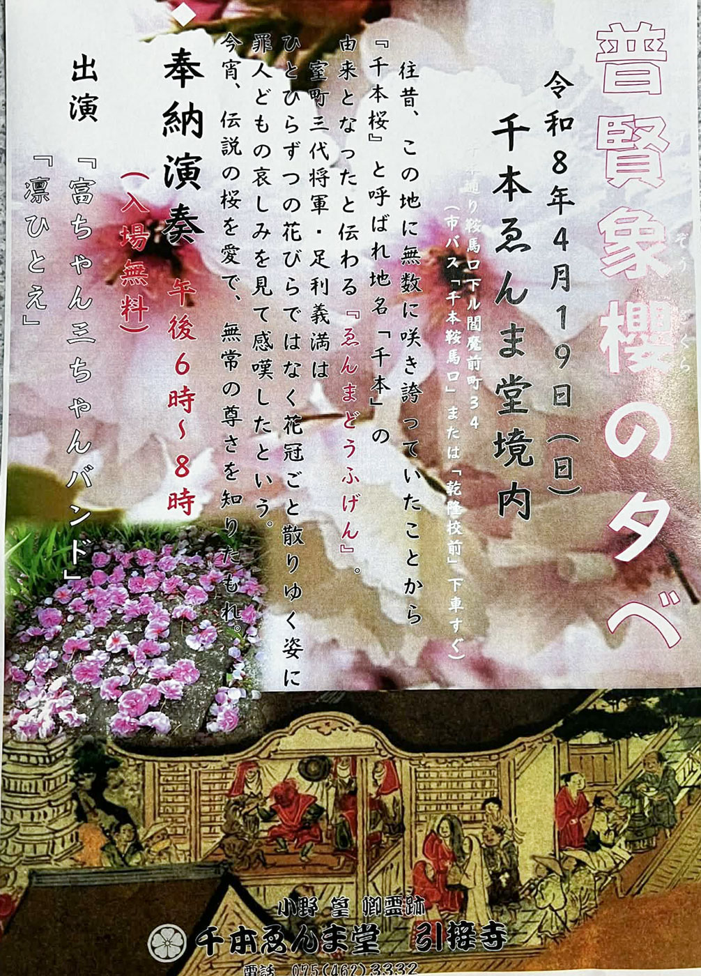 | 4/19(日) | 普賢象櫻の夕べ(千本ゑんま堂) |