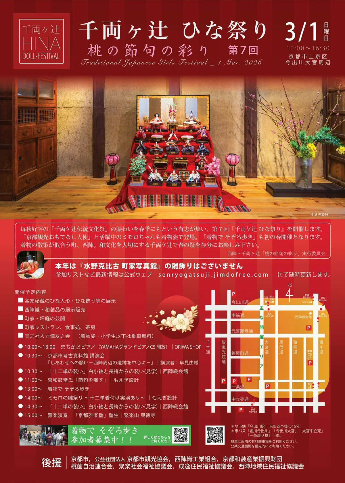 3月1日(日)、西陣・千両ケ辻一帯で「千両ケ辻 ひな祭り」が開催されます。